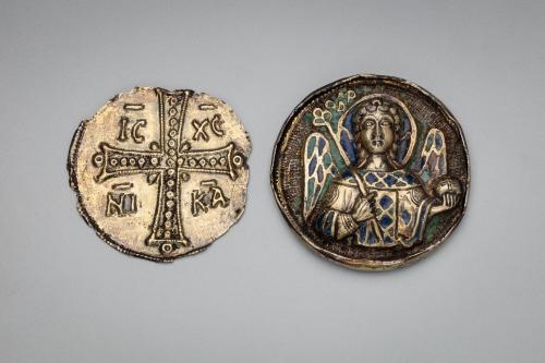 Descriptionrecto: Archangel Michael; verso: Cross with abbreviations for "Iesous Christos Nika" (Jesus Christ Conquers)