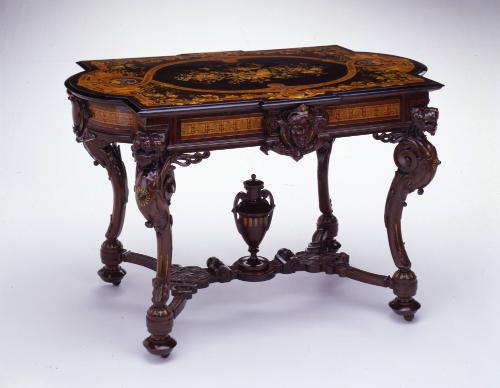 Mediumebony, rosewood, sycamore, kingwood, tulipwood, amboina, mother-of-pearl, and lacquer