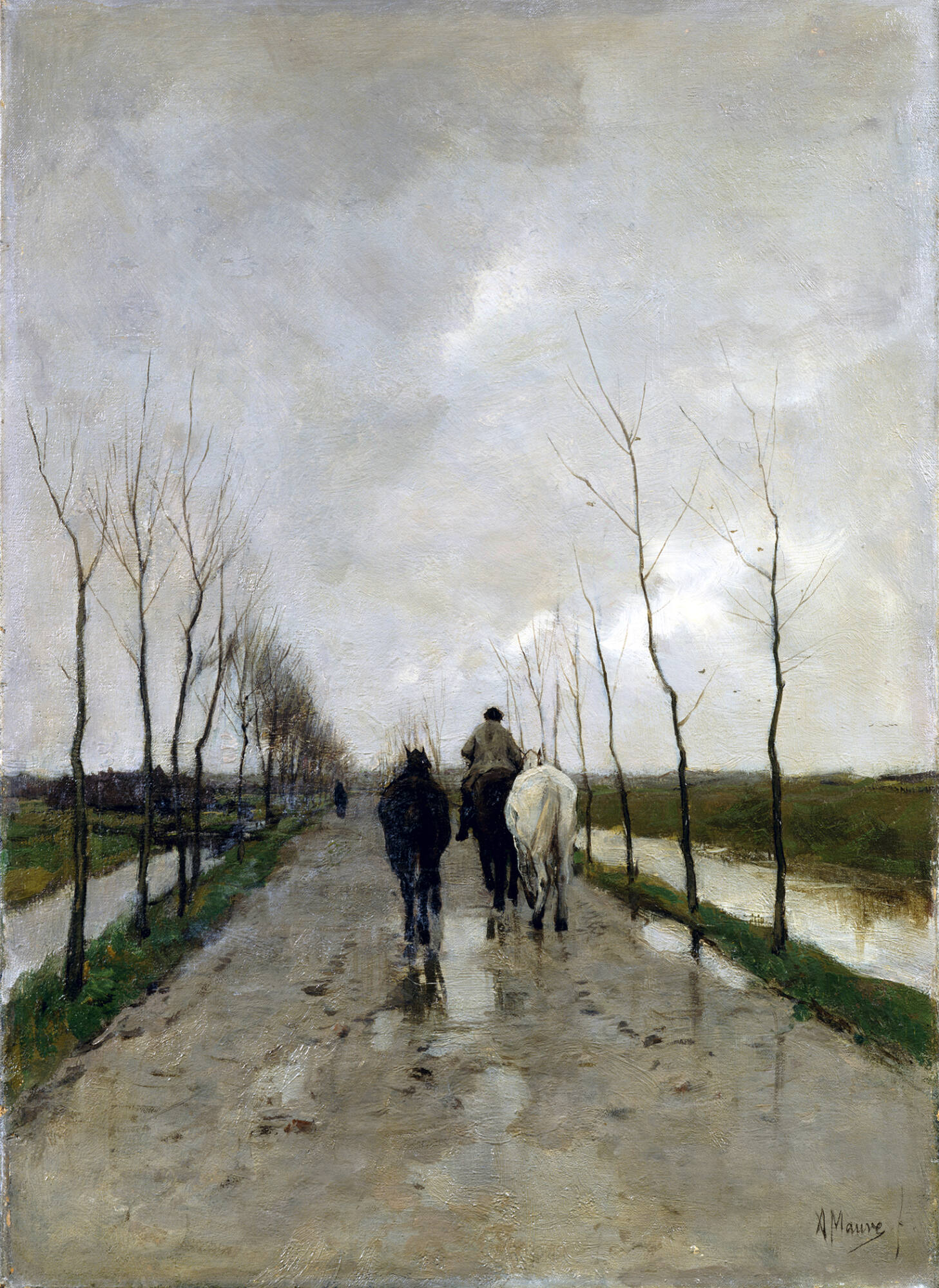 Label TextLed by Anton Mauve, the group of Dutch painters known as the Hague School distinguished itself by its exceptional rendering of moody atmospheric effects. As a Dutch critic wrote in 1875, “The artists try, by preference, to render mood; and they give precedence to tone above color…. They have revealed the poetry of gray in a hitherto unprecedented manner.” Mauve’s A Dutch Road reveals his characteristic “poetry of gray” and his debt to the great Dutch 17th-century masters of landscape (see galleries 23, 24, and 27). Finding inspiration in what he considered the heroic aspects of everyday life, Mauve, along with other 19th-century artists like Jules Breton (look for his painting The Shepherd’s Star), tried to depict nature and the “simple life” that was being swept away by the Industrial Revolution and rapid urbanization.Published ReferencesToledo Museum of Art Museum News, no. 41, April 1922, repr.
