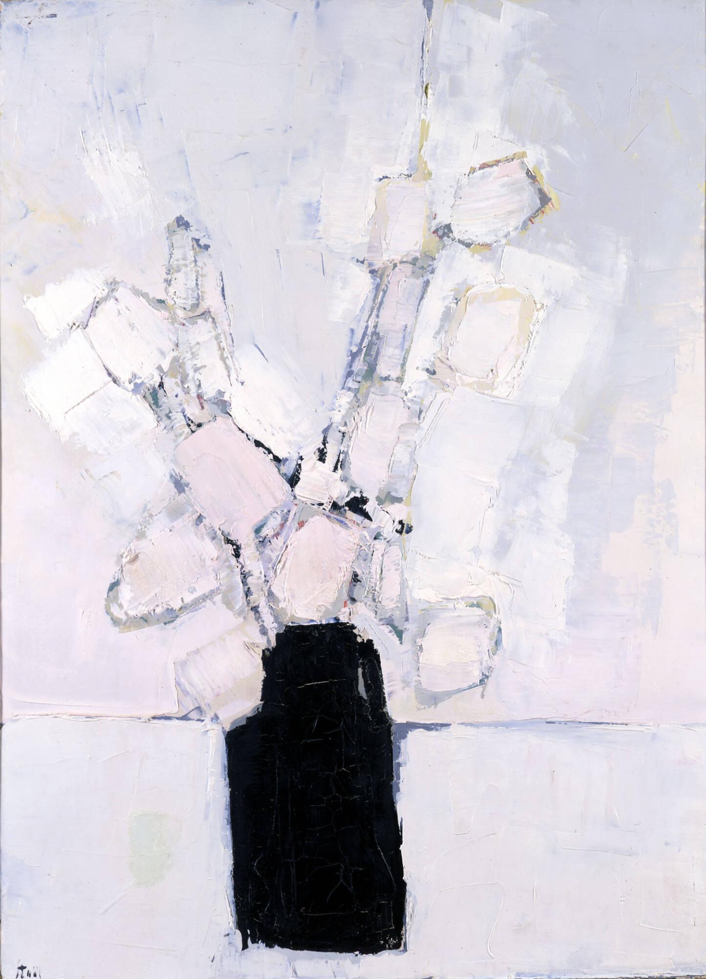 White Flowers in a Black Vase