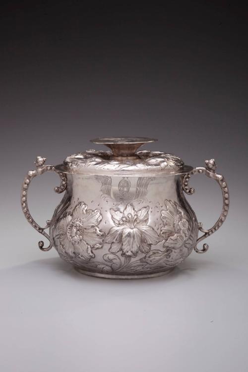 DimensionsH. of cup and cover: 16.5 cm (6 ½ in.),W. including handles: 28.5 cm (11 ¼ in.), Diam: 20.1 cm (7 15/16 in.)