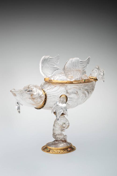 Mediumquartz (rock) crystal with enamelled gold and jewels