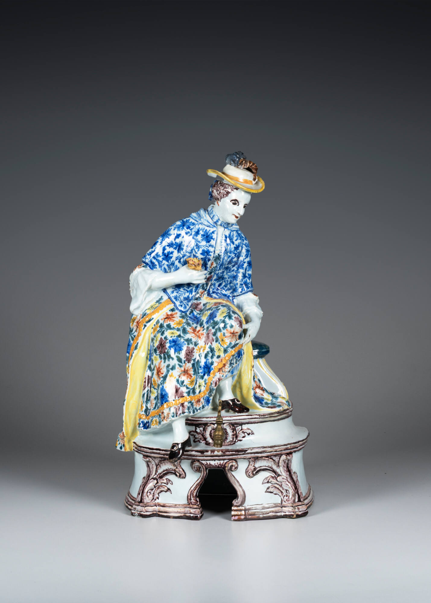 MediumTin-glazed earthenware, known as Delft; brass tap