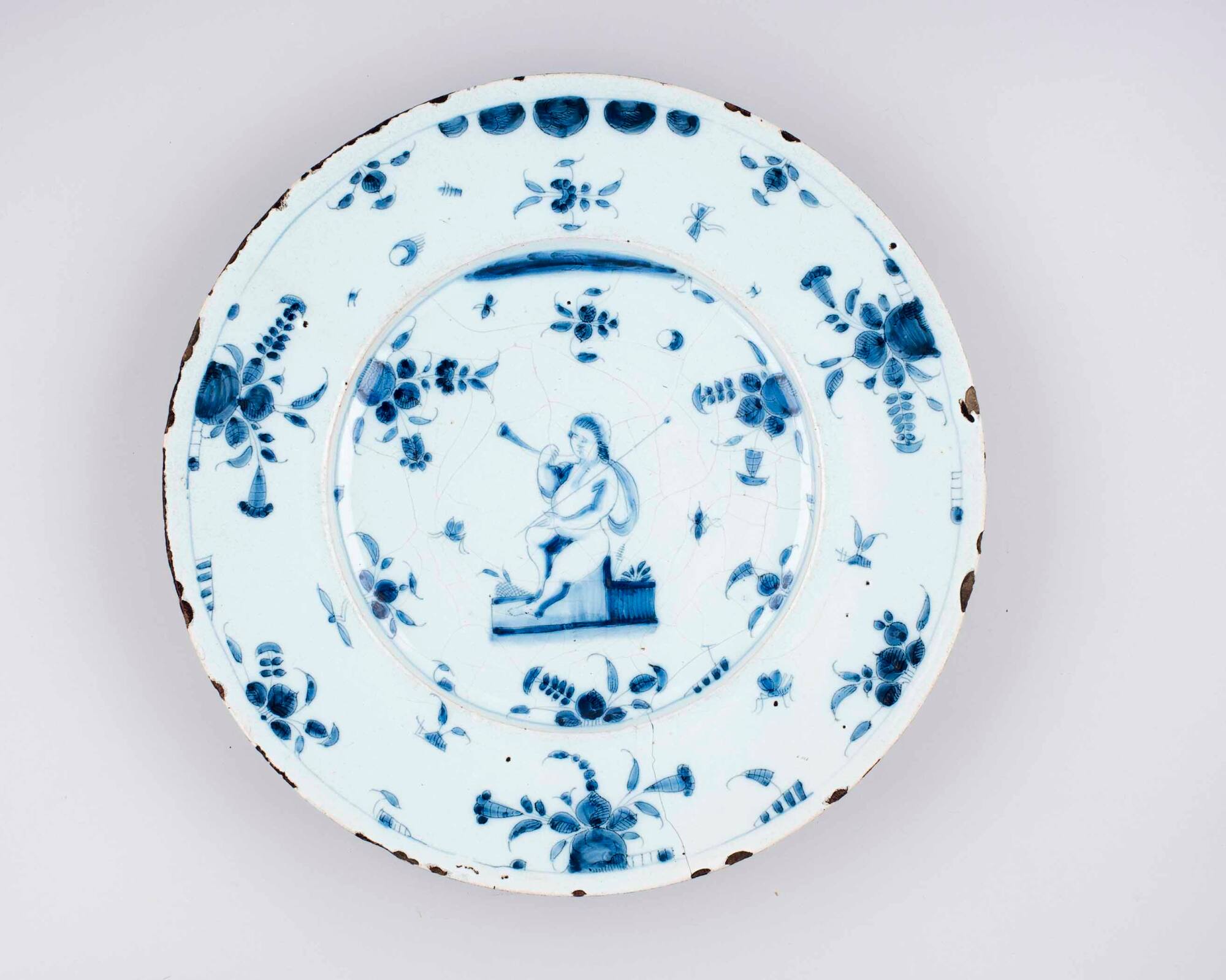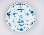 DescriptionLight blue with dark blue decoration; scattered foliage border.