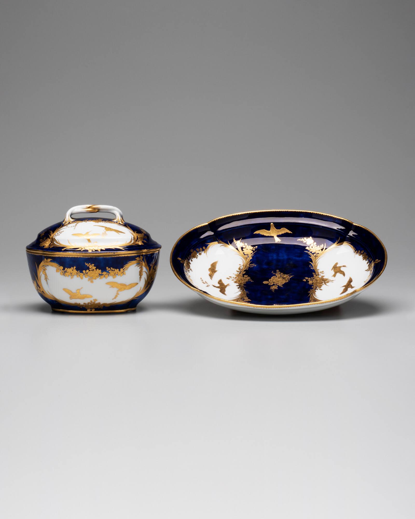 MediumSoft-paste porcelain with underglaze blue ground. Raised tooled gilding