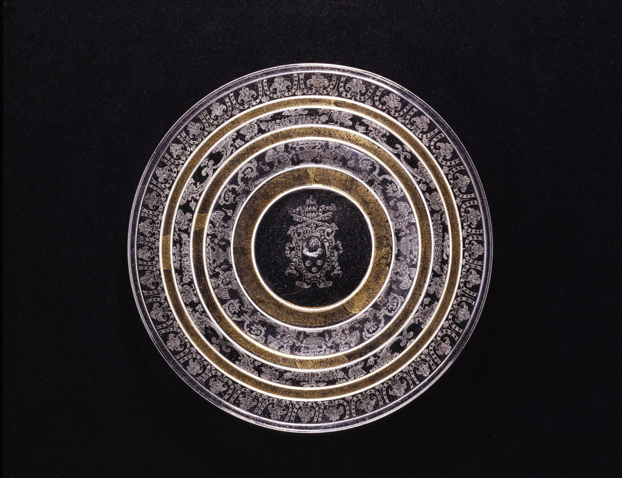 Label TextGiovanni Angelo de’ Medici (1499–1565) was a lawyer from Milan who had made a successful career in the service of Pope Paul IV at the Vatican. He was a vivacious, convivial, and affable man who himself became pope, reigning as Pius IV from 1559–65. He commissioned elegant tableware decorated with his new coat of arms, which includes the papal seal with crossed keys and dome-like papal crown as well as the Medici family shield with five gold balls. The intricate pattern was engraved into the glass with a diamond-tipped stylus. Diamonds from India had reached Venice through eastern trade in the early 16th century, and their hard points proved suitable for embellishing the brittle and thinly blown Venetian soda glass vessels.Published ReferencesPage, Jutta-Annette, The Art of Glass: Toledo Museum of Art, Toledo, Ohio, Toledo Museum of Art, 2006, p. 88, repr. (col.) p. 89.Hans Jakob I. Bair