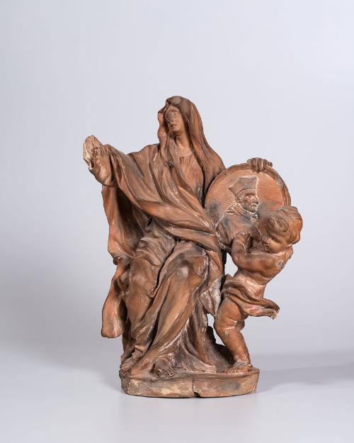 Comparative ReferencesSee also Titi, F., Ammaestramento ecc., 1674, 3 Aug. 1686, lists almost all artists concerned with Falconieri Chapel. Cf. De Rossi, Vari Altari e Cappelle, A Late 17th Century publication with engraved plates, one of which shows Cardinal Falconieri's tomb without the added angels. Cf. Brinckmann, A.E., Barocksculptur, Berlin, 1917, p. 267, Short discussion of the tomb. Cf. Brinckmann, A. E., Barock-bozzetti, Frankfurt, 1923, vol. I, p. 118. Fig. 34 illustrates the Falconierei tomb as completed. Plate opp. p. 118 illustrated the presumably earlier bozzetto in the Collection of Ludwig Pollak, Rome. Cf. Hempel, E., Borromini, Vienna, 1924. Describes his part in the Falconieri Chapel. Cf. Bruhns, Leo, Romische Jahrubuch fur Kunstgeschichte, 1940. Cf. Bruhns, Leo, Die Kunst der Stadt Rom, Vienna, 1951, I, pp. 573, 649. Cf. Portoghesi, Paolo, "Borromini," Encyclopedia of World Art, II, p. 566. Discusses Falconieri Chapel. Cf. Antonia Nara Cellini, "Baroque Art: Italy, Sculpture," Encyclopedia of World Art, II, New York, 1960. Suggests the Faith is reminiscent of Reni. The author has a considerably higher opinion of Ferrata than Wittkower. "Ferrata's works always have a buoyancy, both in composition and in play of light, that truly forecasts the 18th century. His late works show a waxlike, pictorial softness and a changing play of light, tending to give an effect of pathos." This author has other interesting remarks re Ferrata's work and place in the late 17th century Roman sculpture. Cf. Maria Vittoria Brugnole, "Due bozzetti del Seicento: Ercole Ferrata e Pierre Etienne Monnot," Bollettino d'Arte, 1960, IV, pp. 339-345.19th century