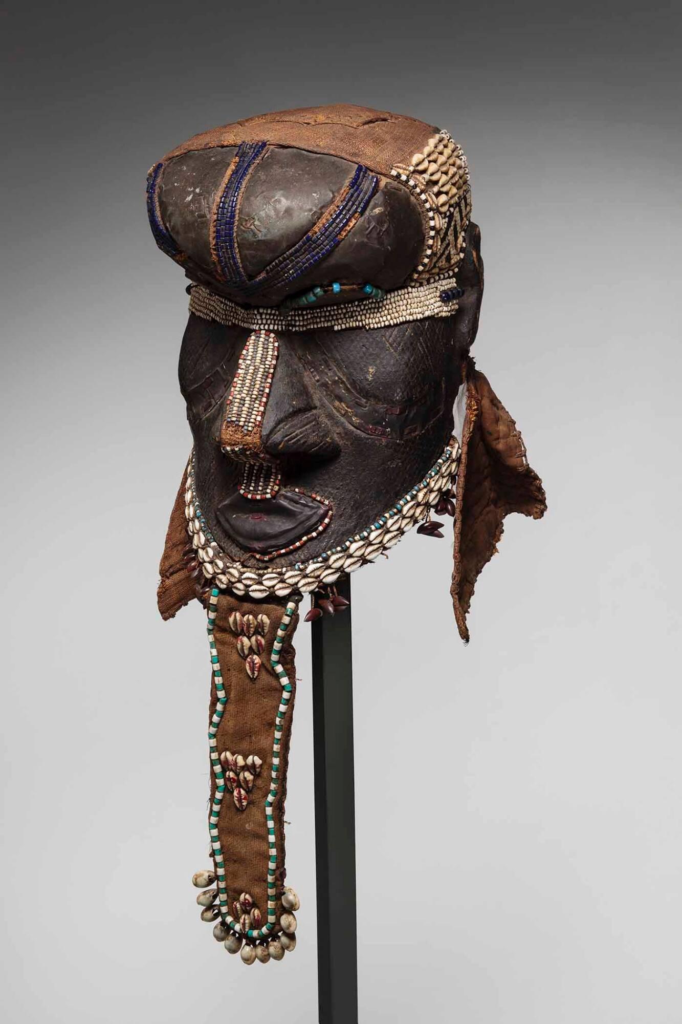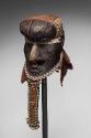 Mediumwood with leather, brass, fabric, cowrie shells, beads