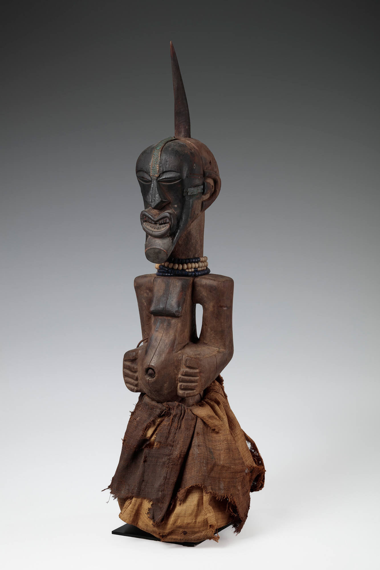 Mediumwood, copper, glass beads, raffia fiber, and antelope horn
