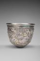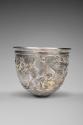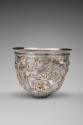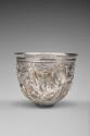 Label TextMore than simple silverware, this cup is an artistic masterpiece adorned with delicate designs. The masks, wine containers, and musical instruments all reference the festivities of Bacchus, the Roman god of wine and theater. Most masks on luxurious Roman drinking cups represent characters from tragic, comic, and satyr (burlesque) plays written by Greek poets in the fifth and fourth centuries BCE. These antique plays were fashionable in elite literary circles of the early Empire, because by this time, mime and pantomime had become the dominant forms for popular theater, neither of which used masks. Reportedly found near Istanbul, this cup was part of a treasure that included three silver cups now in the British Museum (1960,0201.1-3) and a ladle in the Museum of Fine Arts, Boston (1961.159).Published References"New Accessions," Toledo Museum of Art Museum News, new series, vol. 5, no. 3, Autumn 1962, p. 54, repr.