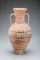 Label TextWith patterns and designs covering every inch, this vase is an example of what is now called the Geometric period of Greek art. Although most of the decoration takes the form of abstract motifs such as triangles, zigzags, Xs, and dots, there are some figures present. On the neck you can spy two heraldic horses tethered to a central post, while on the body a row of horses parade to the left. Long-necked birds are depicted directly below the neck of the vase. The Geometric period was a time of growth in Greece when the city-state (polis) was formed, the Greek alphabet adopted, and epic poems like the Iliad and Odyssey composed.Published ReferencesWashington, Seldon, "Greek Vase Painting," Toledo Museum of Art Museum News, new series, vol. 5, no. 4, Winter 1962, repr. p. 75.