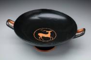 Label TextAthenian ceramic vessels are surprisingly light. The walls are usually quite thin and they follow a very subtle curve. Both the lightness and the curve were achieved by tooling away some of the clay after the vessel was thrown on the potter’s wheel and then by polishing the surface with a smooth stone or strip of damp leather. This kylix was also made in pieces: the bowl, the stem, and the two handles. The pieces would have been attached to the bowl before firing, using liquid clay as a kind of glue. The simple painting of a stag provides a graceful balance to the otherwise black interior.Published ReferencesWashington, Seldon, "Greek Vase Painting," Toledo Museum of Art Museum News, vol. 5, no. 4, 1962, p. 85.
