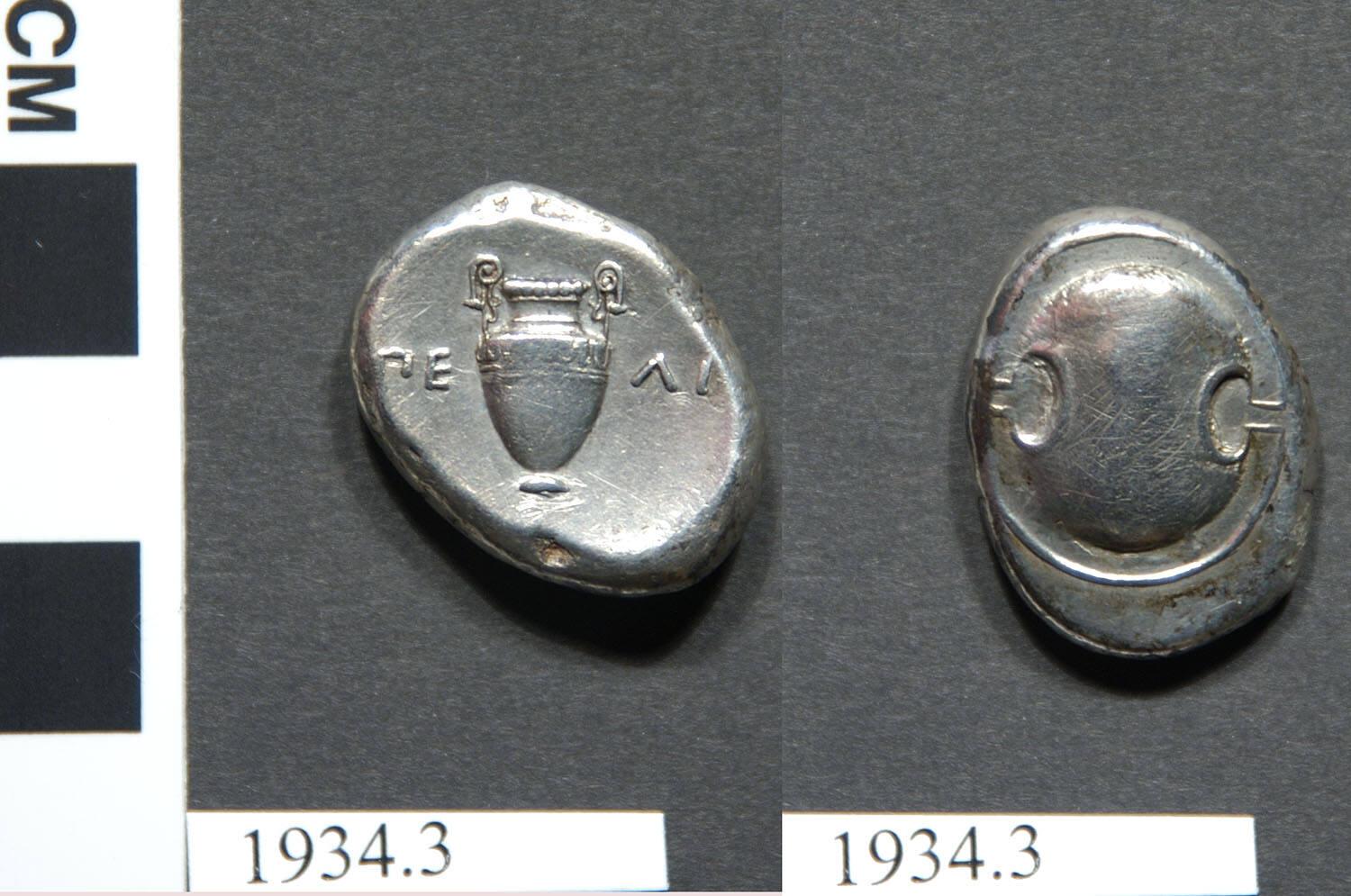 cf. Kraay, Colin and Max Hirmer, Greek Coins, London, 1966, no. 459, pl. 145 for a similar reverse.
