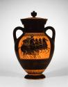 DimensionsAmphora and Lid: H: 18 1/8 in. (46.2 cm); W (with handles): 11 5/8 in. (29.5 cm).