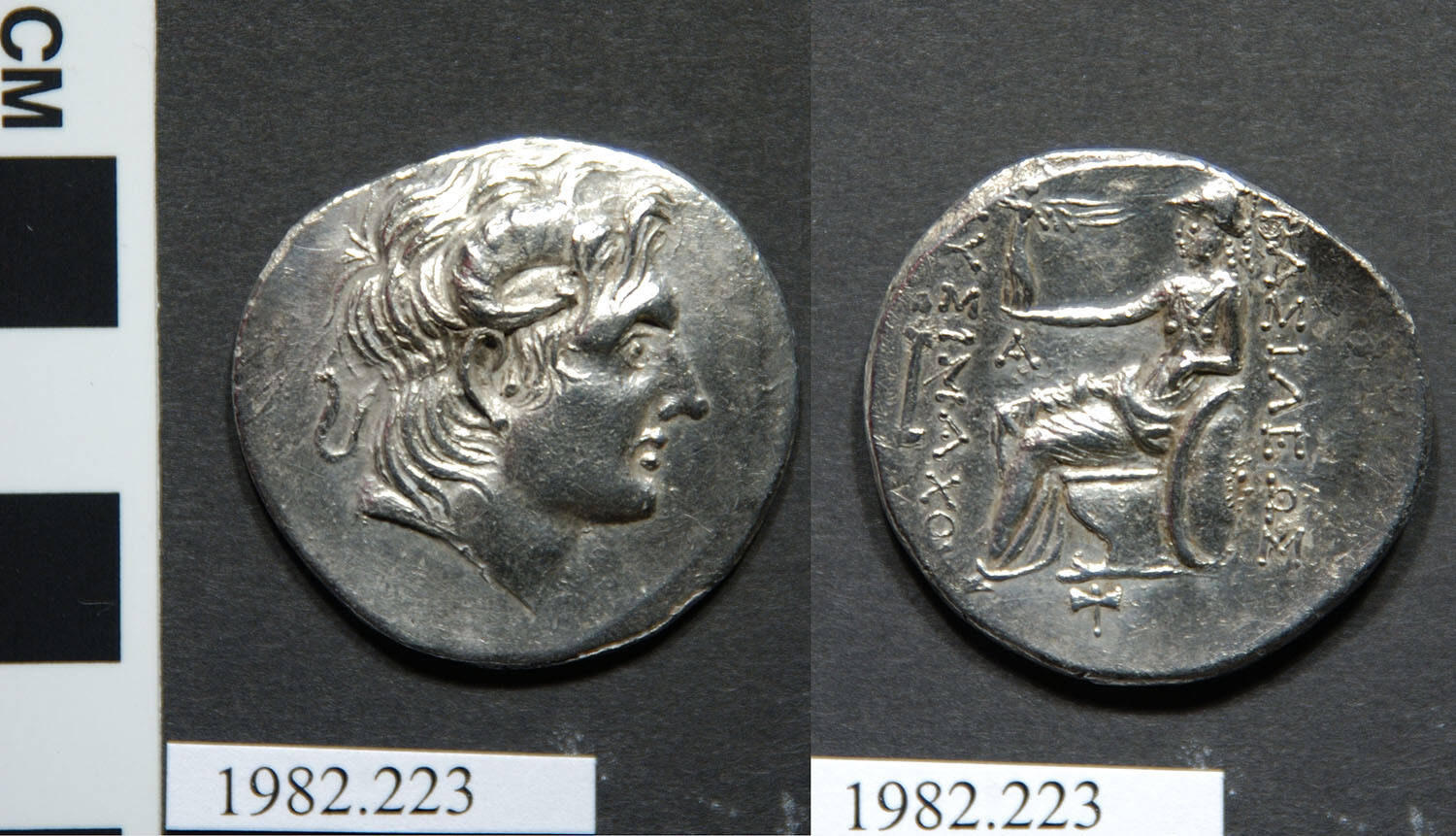 DescriptionObverse: Head of Alexander III deified as Ammon Reverse: Seated Athena