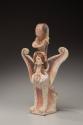 Label TextThis painted terracotta jug, shaped as a sphinx with outspread wings and trefoil spout, was crafted for display in a tomb. Made in Canosa, a center of funerary ceramic production in Hellenistic South Italy, it dates to the 3rd century BCE. Its striking features—looped handle, vivid egg-and-dot rim, ornamental discs, and painted jewelry—reflect a tradition of richly symbolic and visually dramatic tomb wares. The figure wears a lemniscus wreath, a sign of ritual or divine association, and a palmette-decorated wheel pendant. Molded as a body with separately attached wings, neck, and spout, the vase has a sealed neck and open base, reinforcing its ritual function. In Greek art, sphinxes evolved from decorative creatures into symbols of transformation and thresholds. By the fifth century BCE, they were closely linked to death, often shown abducting youths or watching over the deceased.Published ReferencesLuckner, Kurt T., The Museum Collects: Treasures by Sculptors and Craftsmen, Toledo, 1980, pp. 10-11.