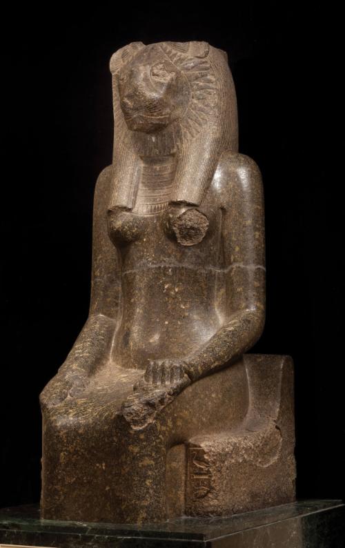 Label TextToledo's three monumental sculptures of Sekhmet (1927.152, 1927.153, and 1927.154) once stood among hundreds of similar statues at the Temple of Mut in Karnak, ancient Thebes. Commissioned by Pharaoh Amenhotep III (ca. 1390–1352 BCE), the statues portrayed Sekhmet, the lion-headed goddess feared for her destructive force and revered for her healing power. Carved from hard stone and originally positioned in symmetrical rows around a sacred lake, they served as votive offerings and ritual instruments. Most bore the king’s name, linking royal authority with divine protection. These three statues entered the Toledo Museum of Art in 1927 as a gift from Edith Pierrepont Morgan (1873–1951) of Aurora, New York. Though the circumstances of their acquisition remain uncertain, Edith’s brother, Frederick Grinnell Morgan (1866–1920), served as U.S. Vice Consul in Cairo in 1905. It is possible—though unconfirmed—that the statues came into the family's possession during that period.Published ReferencesBulletin of the Metropolitan Museum of Art, v.14, no.10 October 1919, Part II, p.1-23, gives full particulars regarding such statues.
