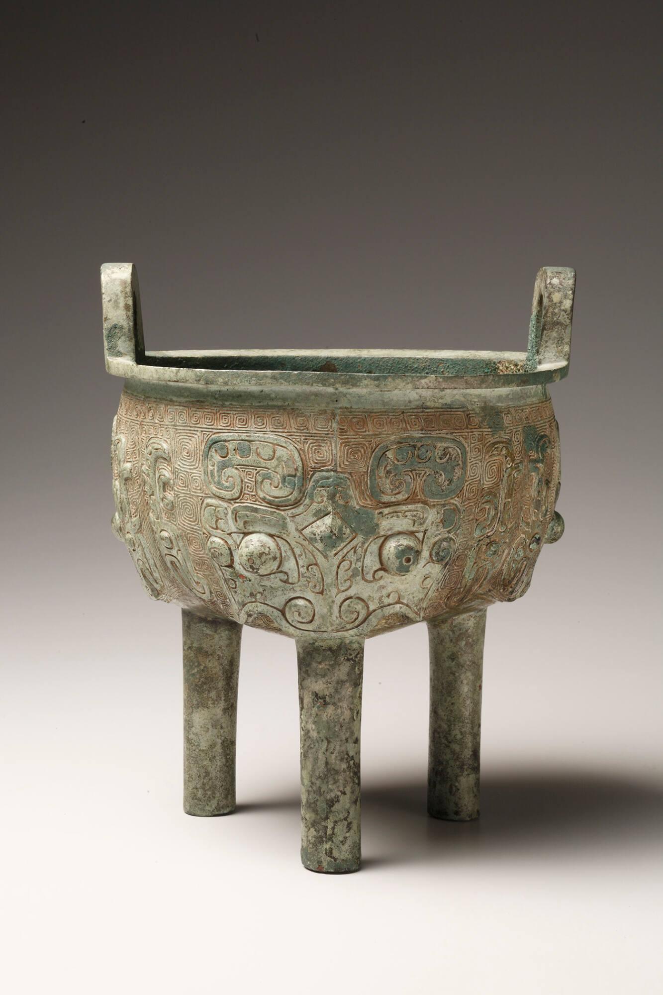 Label TextAncient Chinese burials during the Shang and early Zhou dynasties were often large pit tombs filled with precious objects created for use by the deceased in the afterlife. Vessels used as containers for food and wine are the most prevalent of ancient Chinese bronzes found by archaeologists. They vary widely in shape, from those used for storage (see p. 20) to those used for cooking, such as this tripod vessel known as a ding. The most important ritual vessels of the Zhou period, ding were used to cook food, especially meat, over a fire, with their three legs straddling the coals. Many ding vessels show evidence of burning and carbonization on the belly of the pot, confirming their actual sacrificial, not just ceremonial, use during state and religious rites. Sets of ding connoted high rank in the strict Zhou lineage system. Because the Zhou initially adopted the shapes and decorative motifs of the bronze vessels of the conquered Shang Dynasty, there is often little difference between bronzes made in the Shang Dynasty and the early Zhou Dynasty. However, the unusually thin legs and use of the taotie (animal mask motif; see p. 20) on the body of this ding help to date it to early in the Western Zhou Dynasty, because the taotie ornament, seen here above each leg of the vessel, all but disappeared within a couple of generations after the conquest of the Shang,Published ReferencesToledo Museum of Art, Toledo Museum of Art Masterworks, Toledo, 2009, p. 21, repr. (col.).12th-11th century BCE