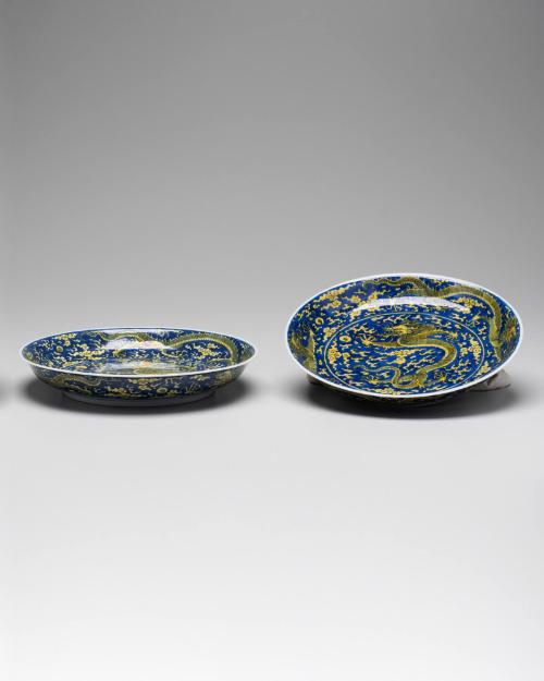 Label TextIn the center, a dragon with a jewel floats among the clouds. On the borders are ascending and descending dragons, each with a jewel, also placed among clouds. Dragons represented supreme power and tireless energy and they were believed to feed upon jewels. On the underside is the reign mark: Da Qing Kangxi, Nian Zhi (Pride in Qing, Kangxi)Qing Dynasty (1644-1722), Reign of Kangxi (1662-1722)