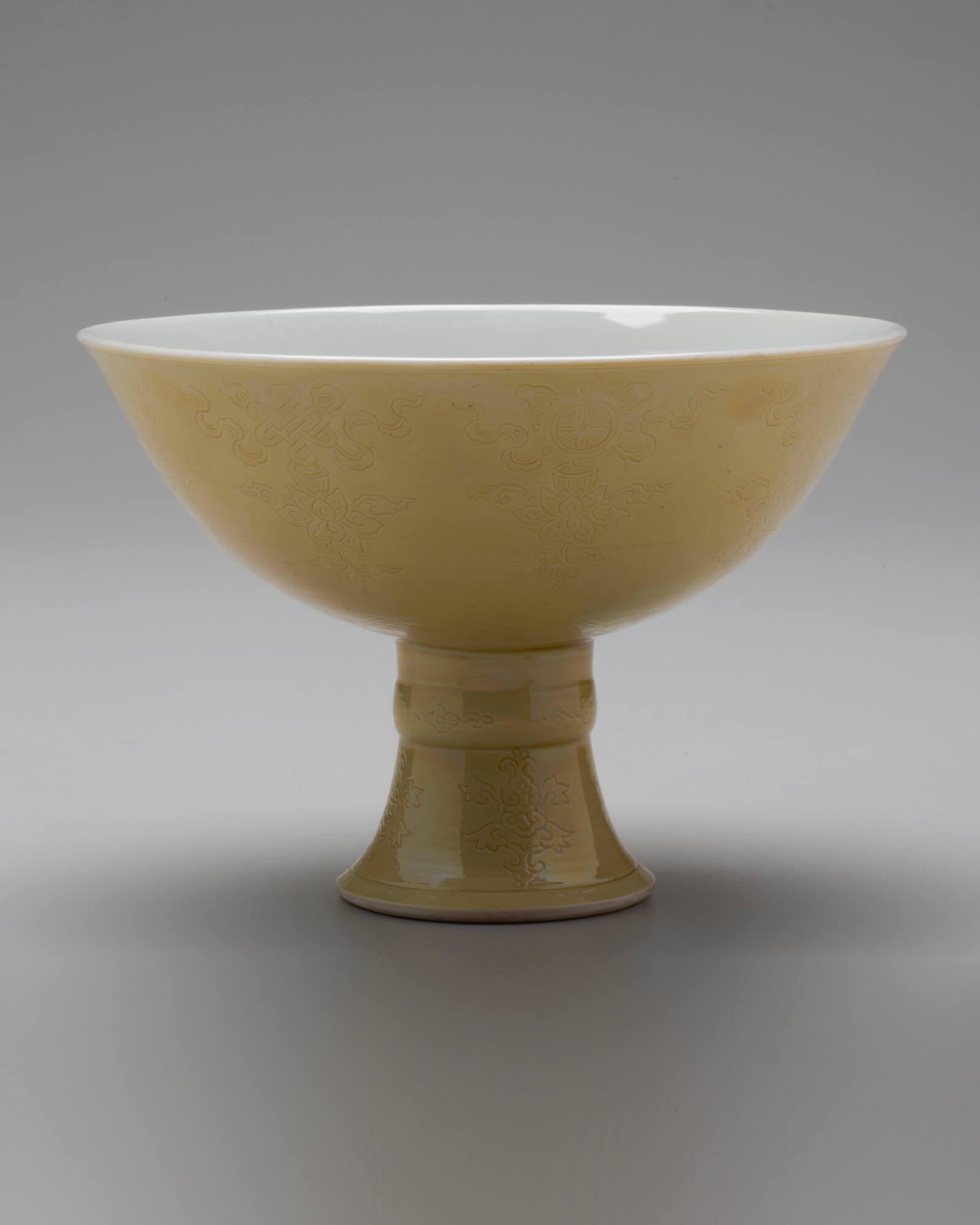 Label TextYellow monochrome porcelains were particularly prized during the reign of Yongzheng when they were reserved solely for the Imperial Court. Some were enriched with incised decorations before the yellow glaze was applied. These bowls have decorations of eight imperial symbols called, ba bao, glorifying the characteristics of perfections to the reign of the emperor.Qing Dynasty (1644-1912), Reign of Yongzheng (1723-1735)