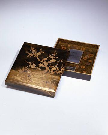 MediumLacquer (hiramakie, kirikane, gold fundame, sprinkled on a black ground) and inlaid gold foil.