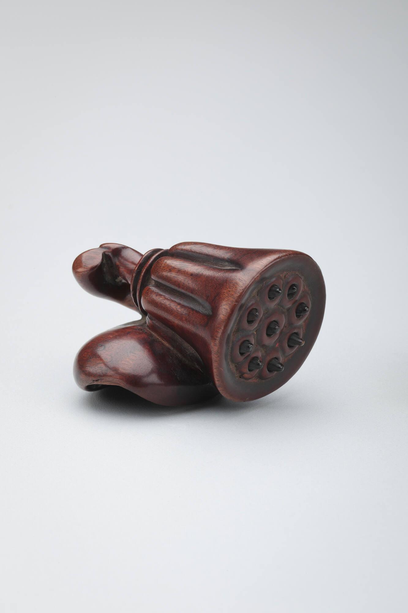 Netsuke: lotus seed pod with stem and leaf