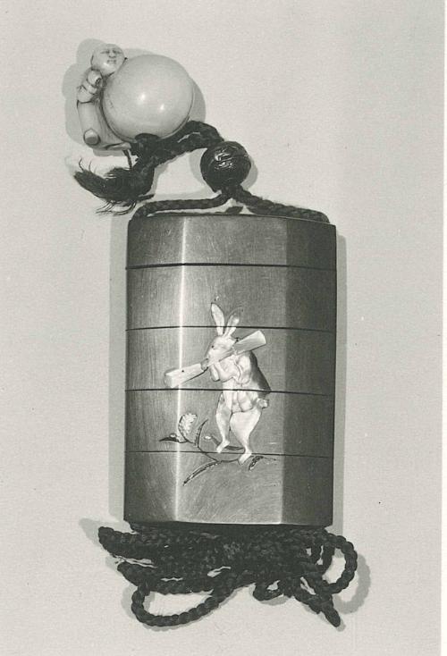 Lacquer; plain gold ground; inlaid mother-of-pearl and stone in high relief. Interiors: nashiji.