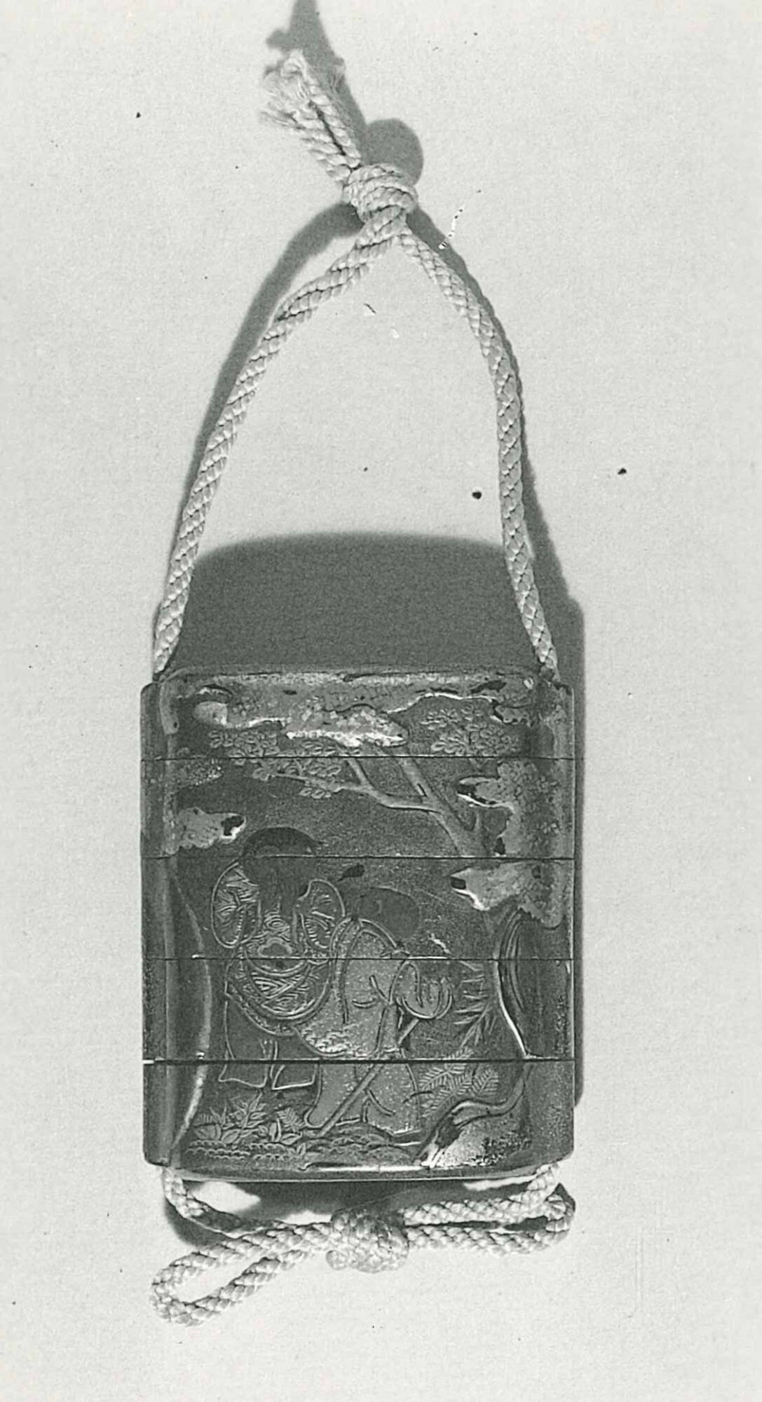 Inro: four small boys playing among clouds, rocks, trees, and ferns