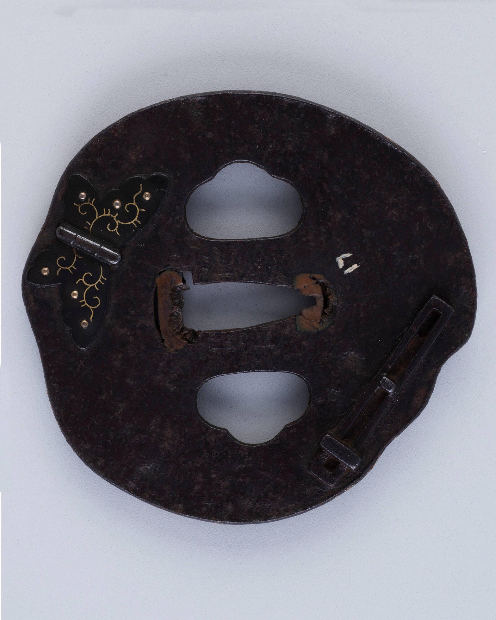 Sword Guard (Tsuba): (front) Fixtures for a Door; (back) Hinge in the Shape of a Butterfly