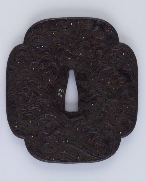 Sword Guard (Tsuba):  (front) Chinaman Evoking a Horse from a Gourd; (back) Landscape