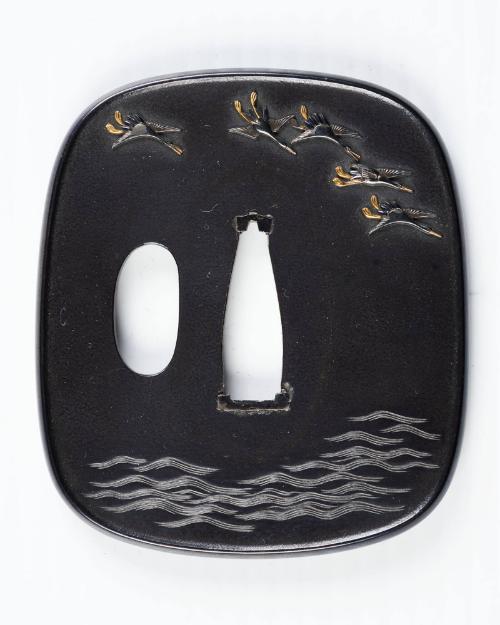 Sword Guard (Tsuba): (front) Cranes Flying over Water; (back) Pine Tree and Sea Shells on the Seashore