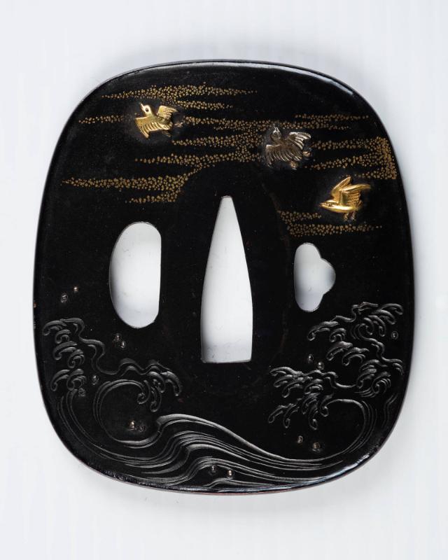 Sword Guard (Tsuba): Plovers (chedori) Flying over a Stormy Sea