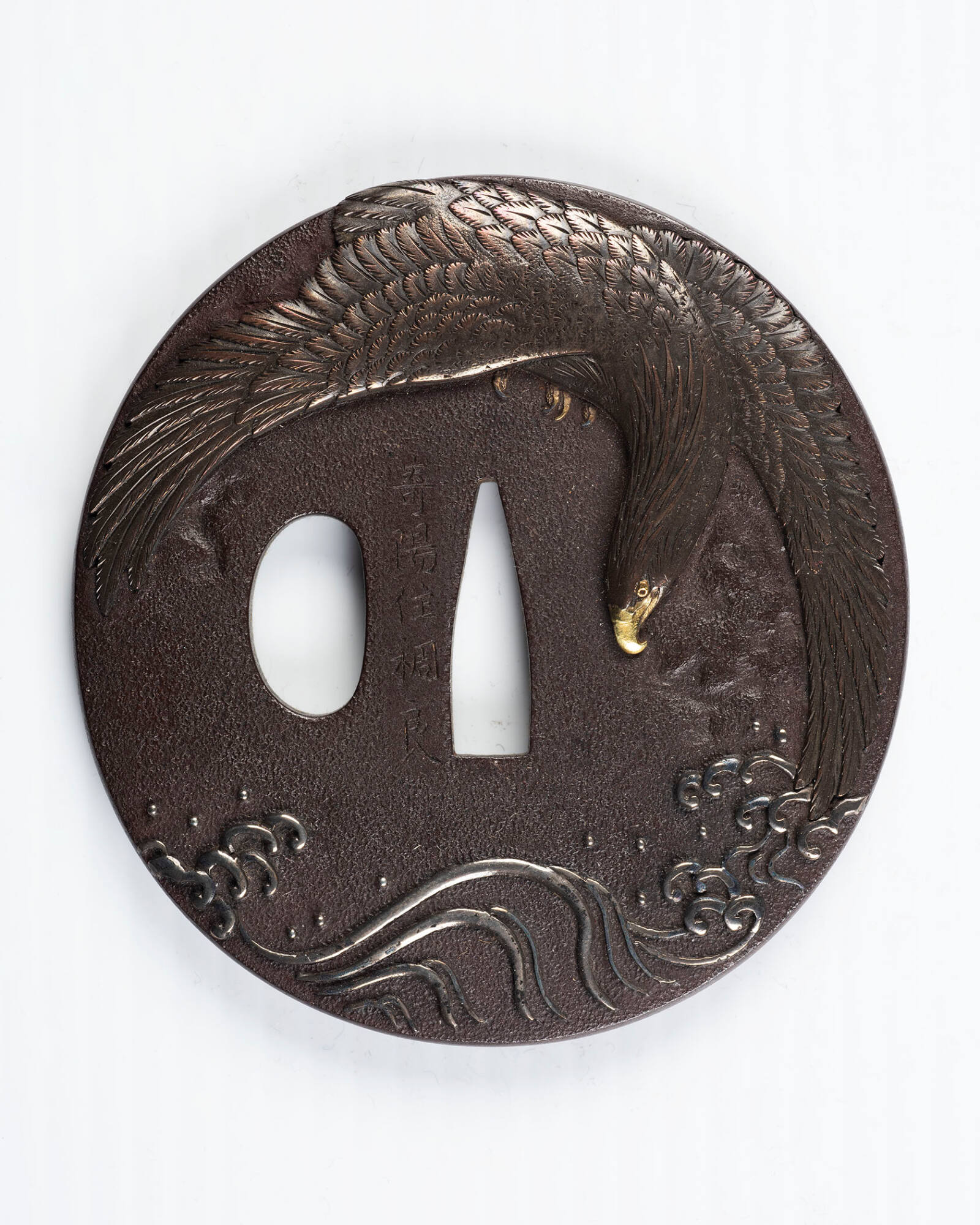 Sword Guard (Tsuba): (front) Eagle above Waves; (back) Monkey in Tree with Storm Cloud Above
