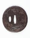 Sword Guard (Tsuba): (front) Fish, Inscription, and Characters; (back) Knife