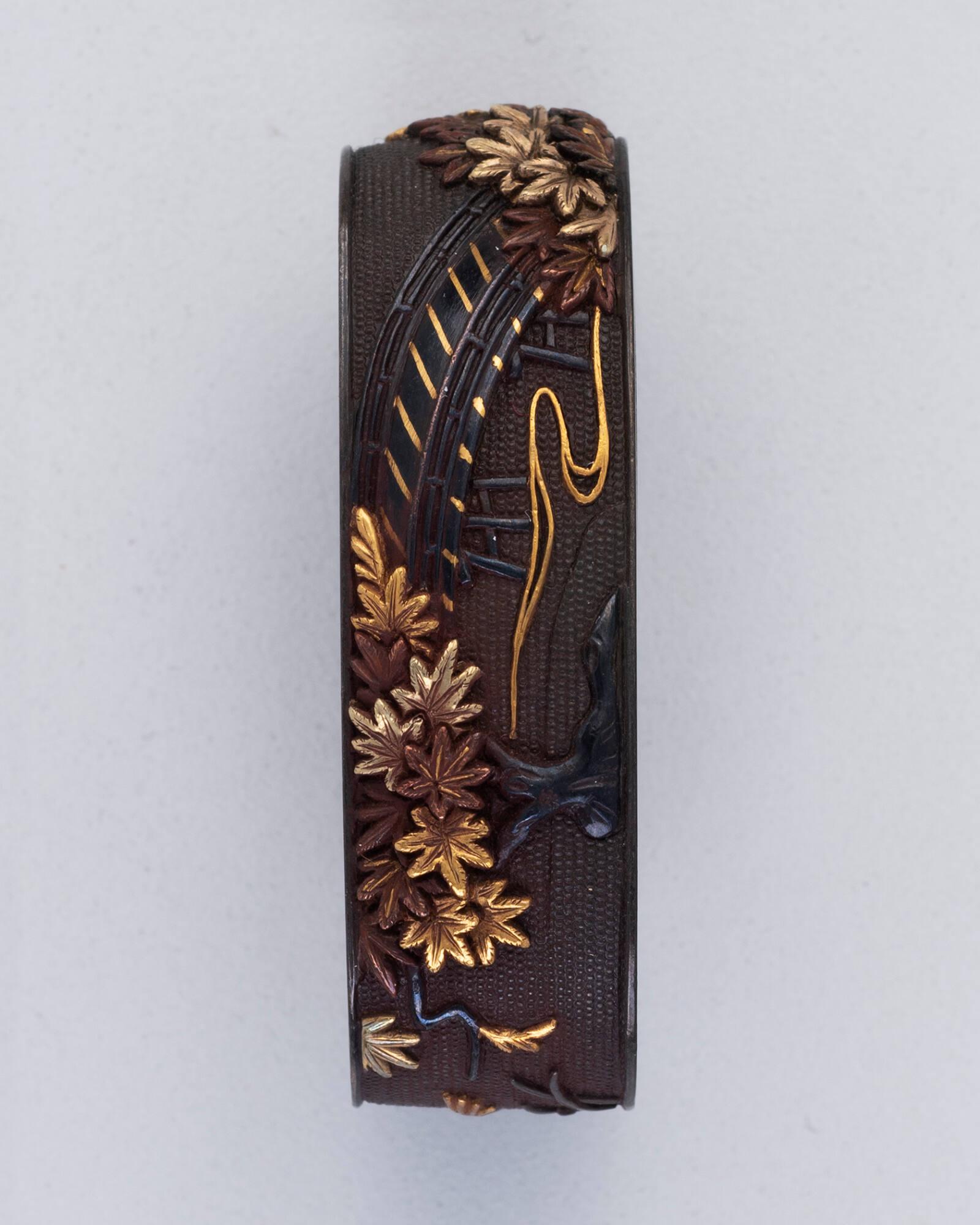 Mediumgold, copper, and shakudo on a shibuichi ground