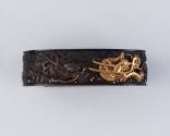 Mediumgold, silver, shakudo, and shibuichi on a shakudo ground