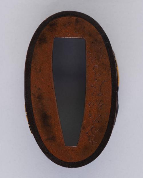 DescriptionShakudo is an alloy of copper and gold. Shibuichi is an alloy of copper, silver, and gold.