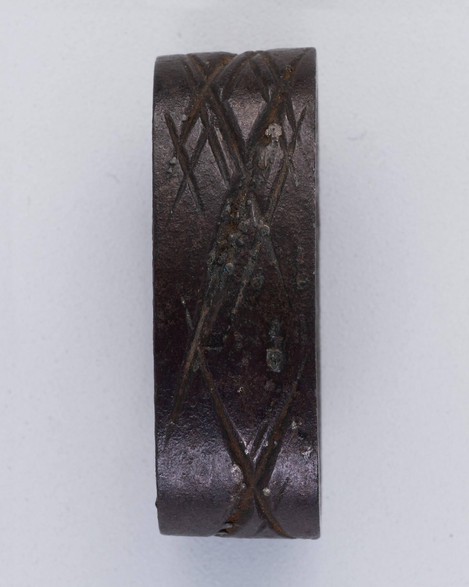DescriptionAn incised iron criss-cross pattern.