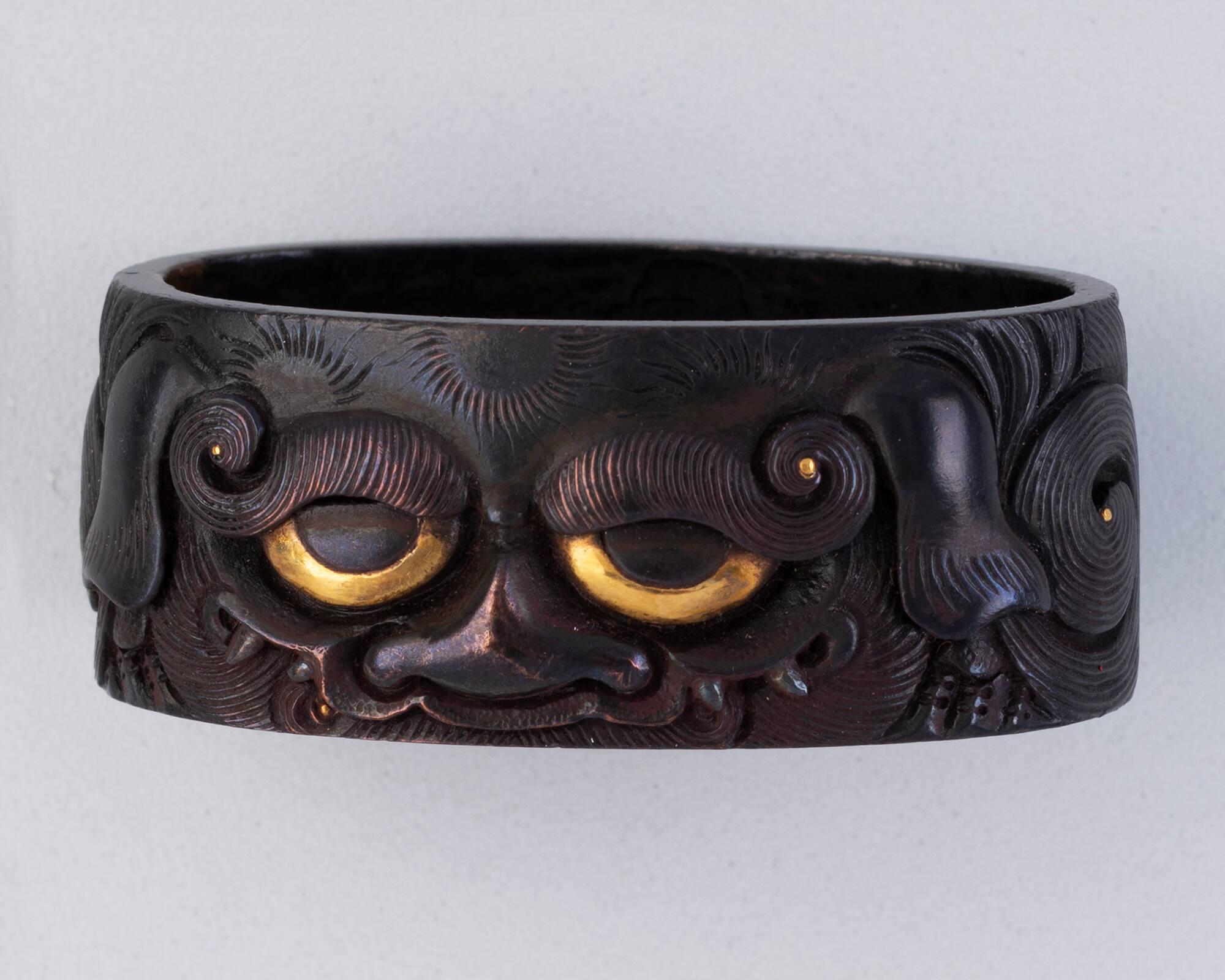 MediumShakudo (alloy of copper and gold) with gold and silver inlays.
