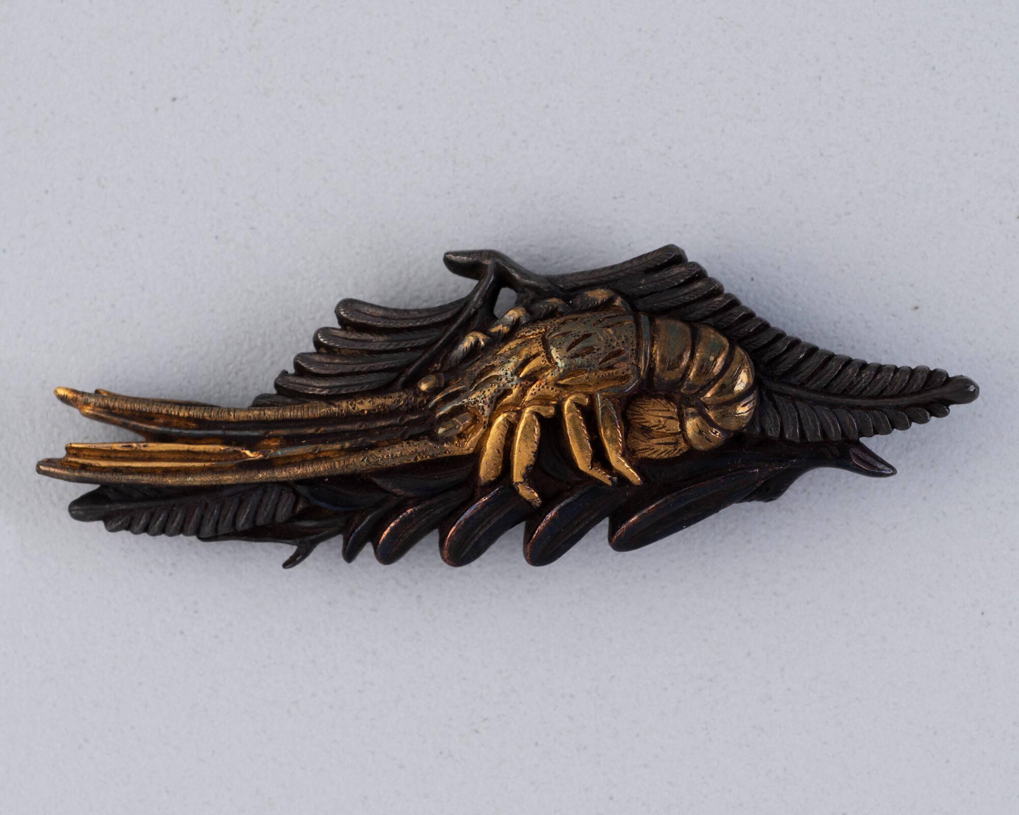 Menuki: Lobster against a background of large leaves