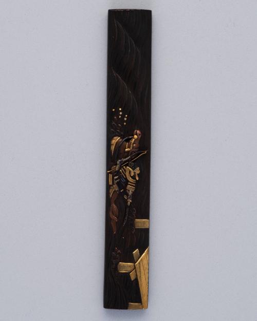 Mediumgold, copper, silver, and shakudo on a shibuichi ground