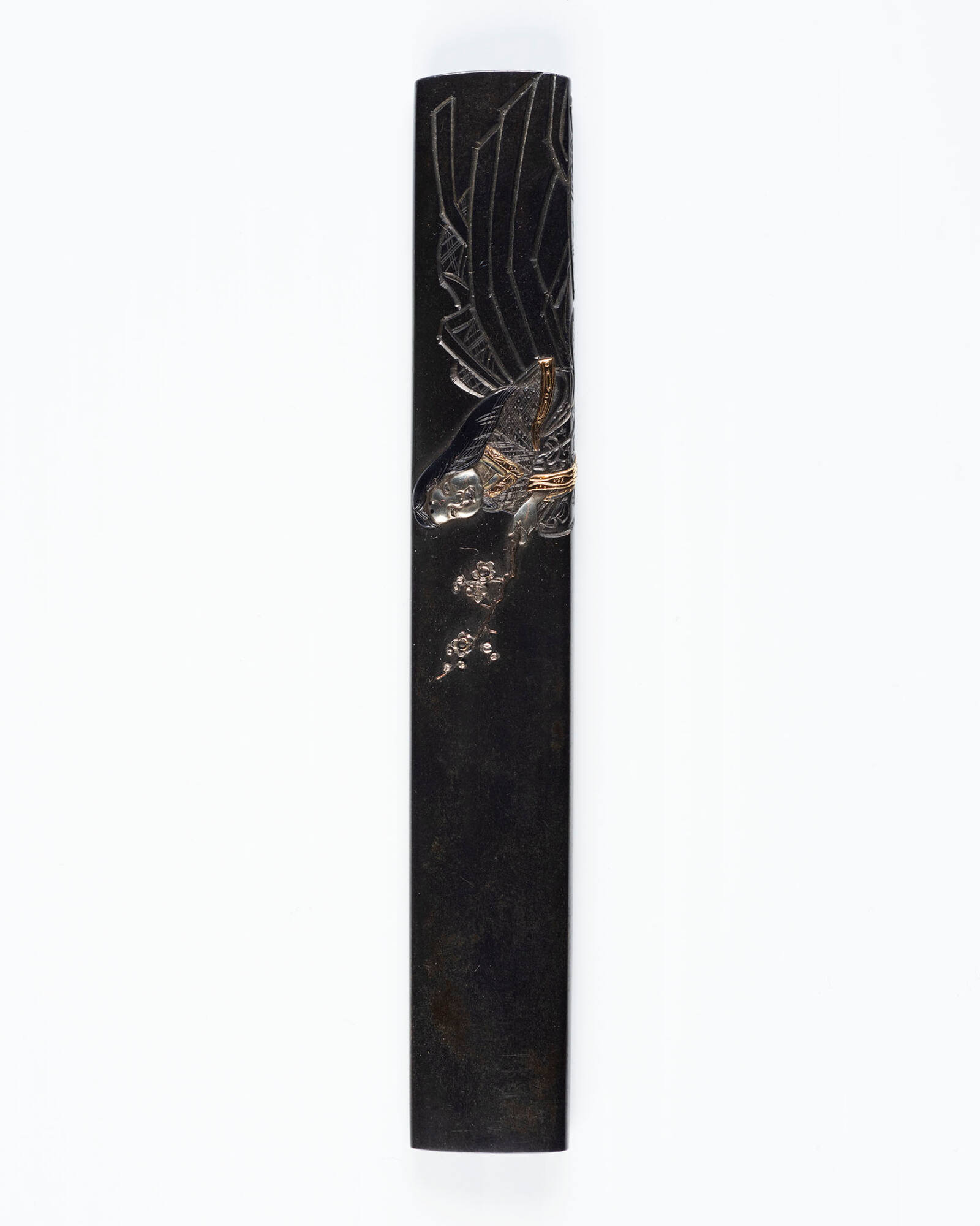 Kozuka: (front) Lady with Plum Branch; (back) incised poem