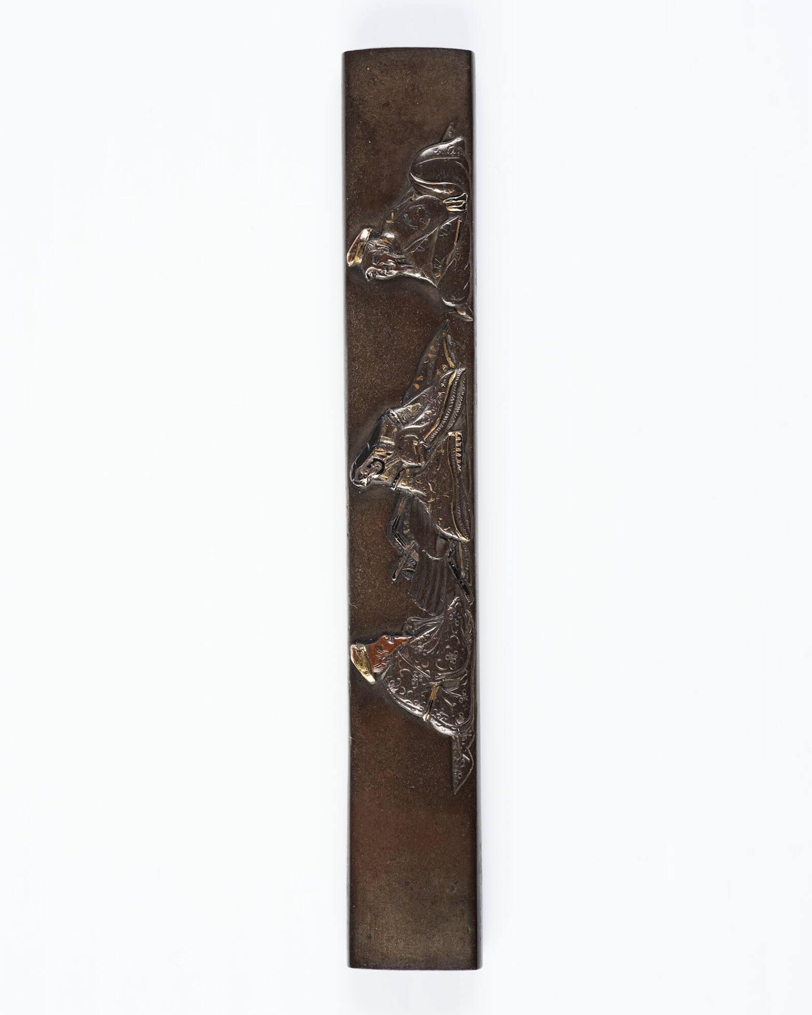 Kozuka: (front) Court Lady and Two Nobles; (back) inscription and incised lines