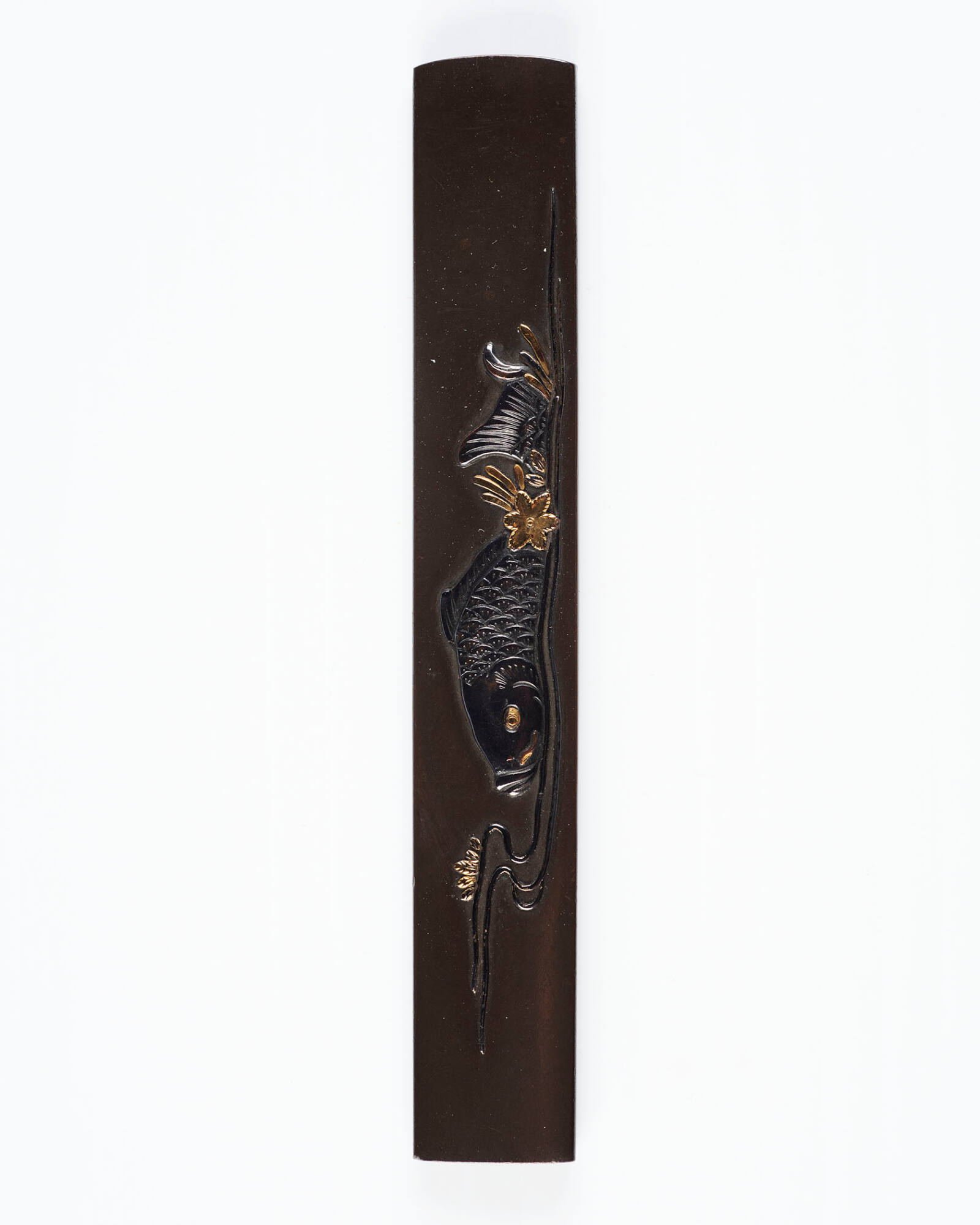 Kozuka: (front) Carp in a Stream; (back) undecorated shibuichi