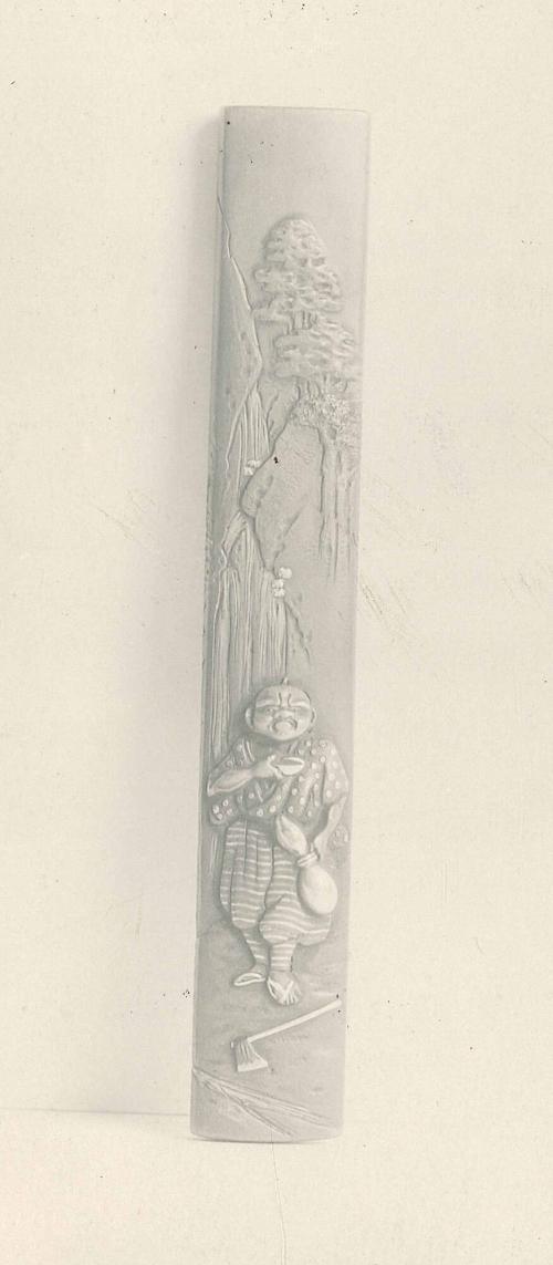 Kozuka: (front) Kosagi with Cup, Gourd, and Axe at Yoro no taki