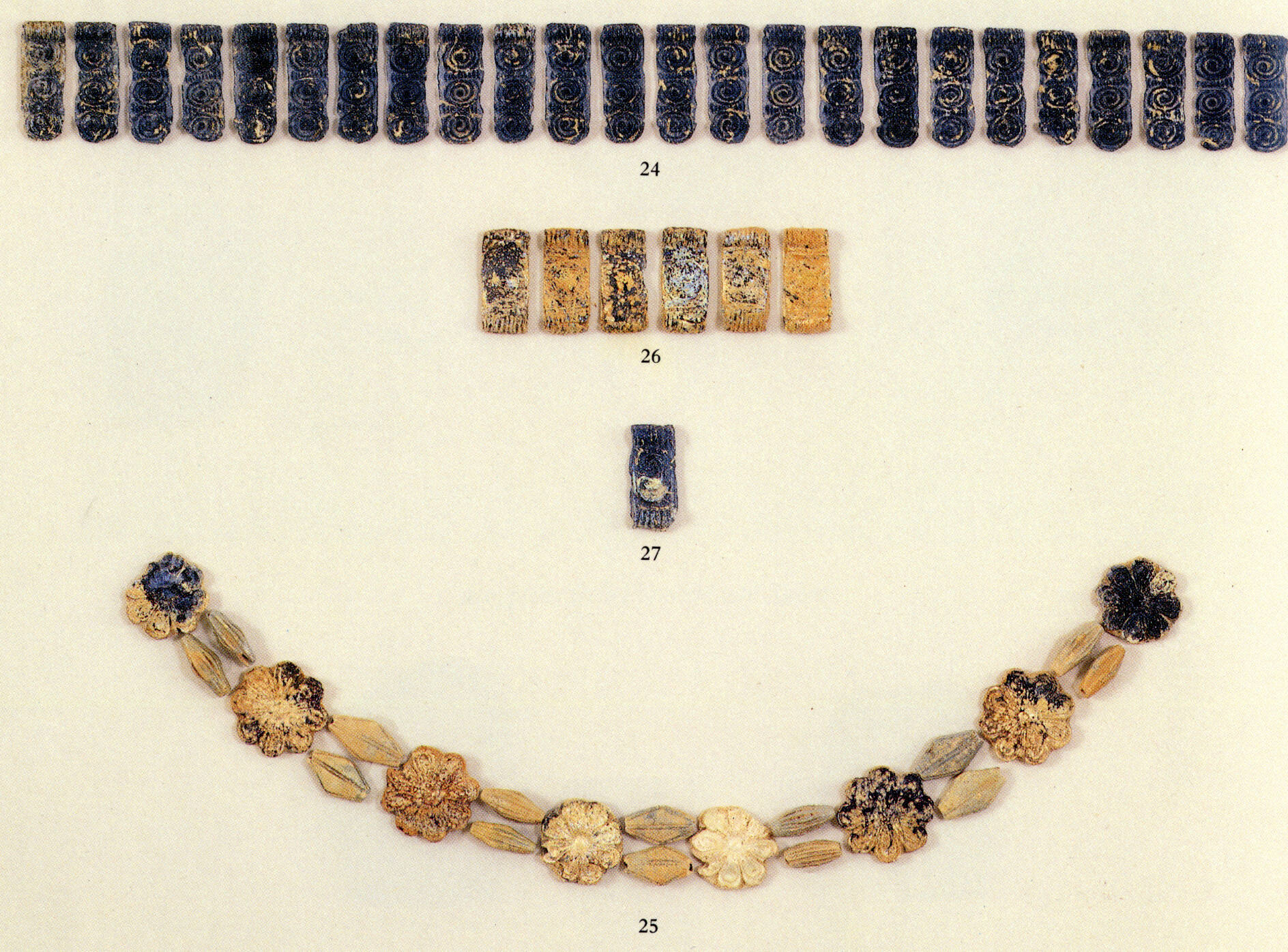 This particular necklace was, according to the dealer Charles L. Morley, found around 1951 in a tomb in Attica, alongside terracotta figurines and a kylix (now in the Saint Louis Art Museum, 285:1952).