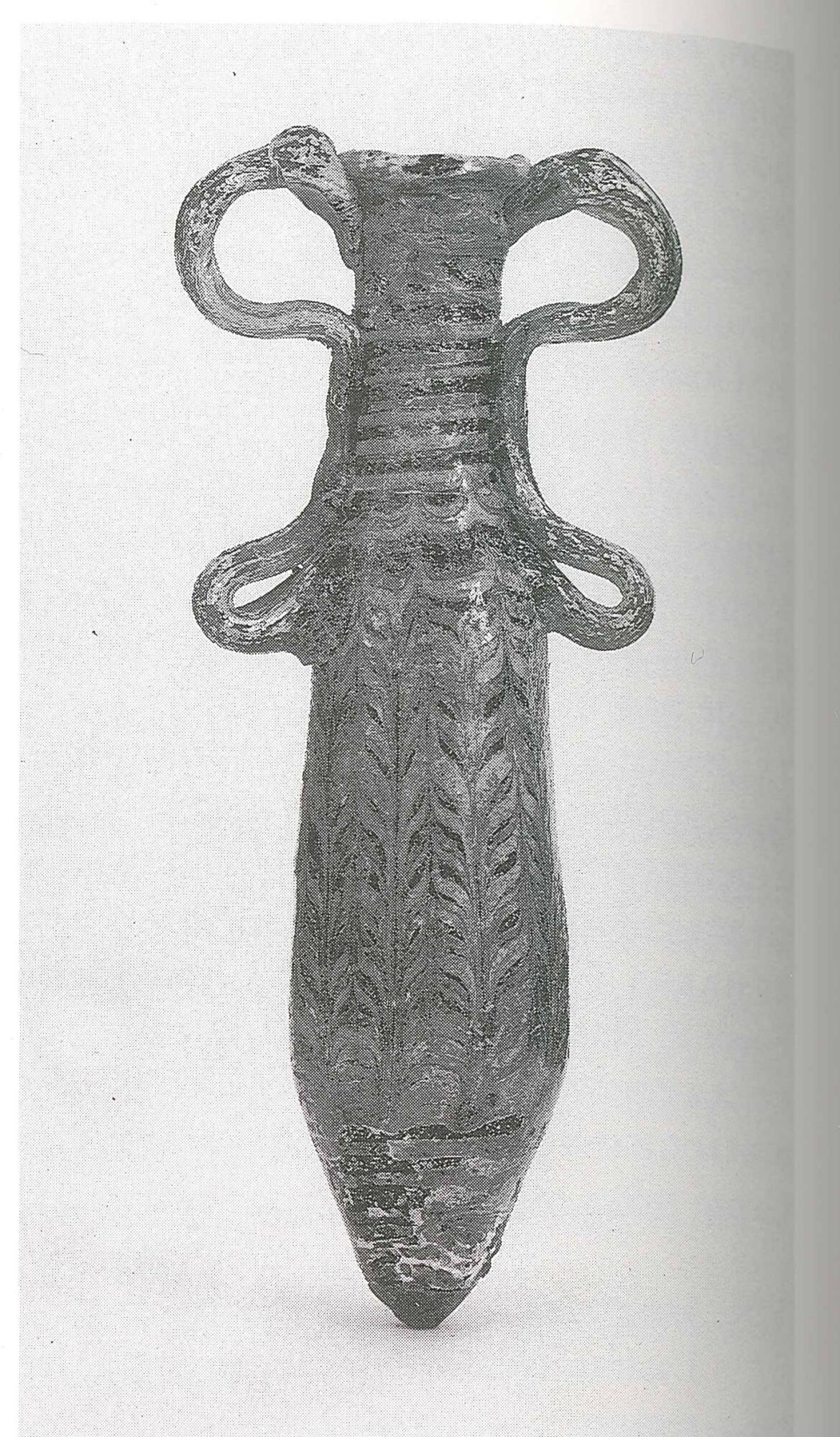 Published ReferencesGrose, David F., Early Ancient Glass: Core-Formed, Rod-Formed, and Cast Vessels and Objects from the Late Bronze Age to the Early Roman Empire, 1600 B.C. to A.D. 50, Hudson Hills Press in Association with the Toledo Museum of Art, New York, 1989, Catalog No. 182, p. 174, drawing, p. 108.Comparative ReferencesSee also Auth, Susan H., Ancient Glass at the Newark Museum, 1976, fig. 25, p. 38. (A similar piece, but with base).2nd through mid-1st century BCE