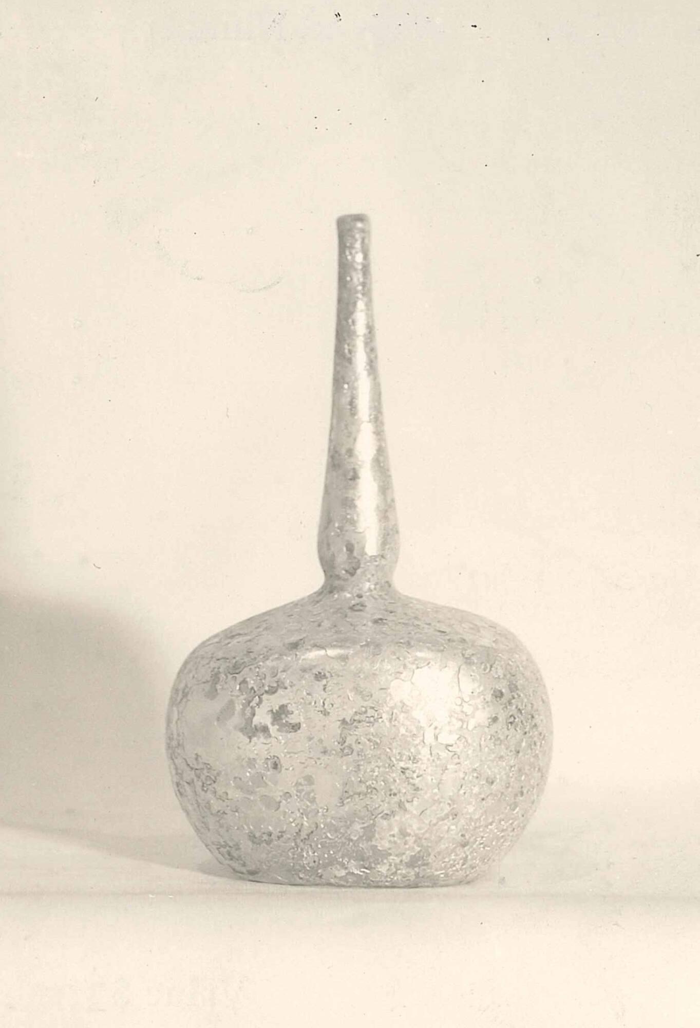 DescriptionColorless; small mouth; neck widens toward shoulder, is constricted at shoulder; flattened spherical body; somewhat angular shoulder; body wider at top than at bottom.