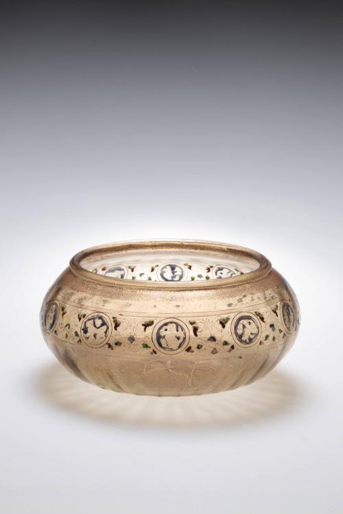 Label TextThe design of this rare glass Zodiac bowl reflects the Islamic belief in the influence of celestial events on human affairs. The study of the movement of planets and stars was gradually shifting from the hard-science realm of astronomy toward the popular, often mystical terrain of astrology that viewed the universe as a circles-within-circles hierarchy. In Islamic decorative art from this period, the central motif is commonly the sun – here represented by a hexagonal star - rather than the earth. Although astrology was considered a branch of astronomy because it required an understanding of the movement of the planets and the ability to calculate their positions in the future, this view was controversial and not universally accepted as a scientific or ethical practice. Objects with astrological decoration were thought to have talismanic powers and protected the owner from sickness, bad luck, or defeat.Published ReferencesAtil, Esin, Renaissance of Islam: Art of the Mamluks, Washington DC, Smithsonian Institution Press, 1981, no. 48, p. 129, repr. (col.).Exhibition HistoryWashington, National Museum of Natural History; Minneapolis Institute of Art: N.Y., Metropolitan; Cincinnati; Detroit; Phoenix; Hartford, Wadsworth Atheneum, Renaissance of Islam: Art of the Mamluks, Washington, 1981, no. 48, p. 129, repr. (col.).early 14th century