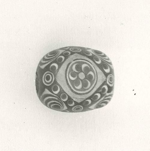 This bead belongs to a group of eight (1948.79-1948.86) exhibited by the dealer C. T. Loo at the Toledo Museum of Art’s East Asiatic Glass Exhibition in 1948. At the time, many of the beads were presumed to have come from Warring States Period tombs in Jincun, Henan Province, or the Chu State capital of Shouchun, Anhui Province.